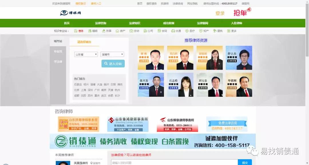 “律眼网”(www.lawoo.net)是隶属于山东易找传媒股份有限公司的一站式法律服务平台,涵盖全方位的法律常识查询、最新法律资讯、线上问律师、电话咨询律师、预约律师线下见面以及案件抢单等法律服务。